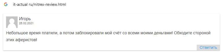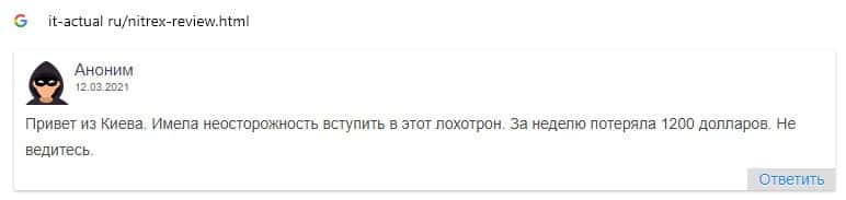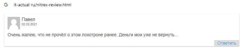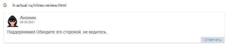 - Nitrex - обзоры обманщиков на других интернет-ресурсах