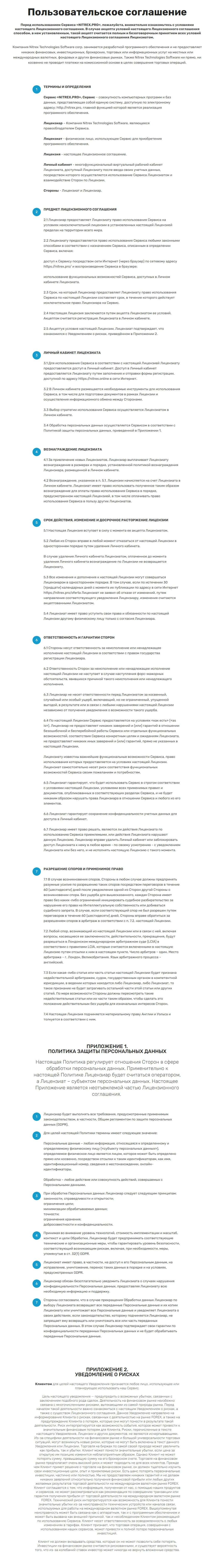 - Пользовательское соглашение на интернет-ресурсе шулеров Nitrex