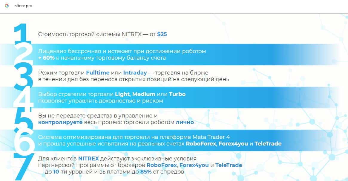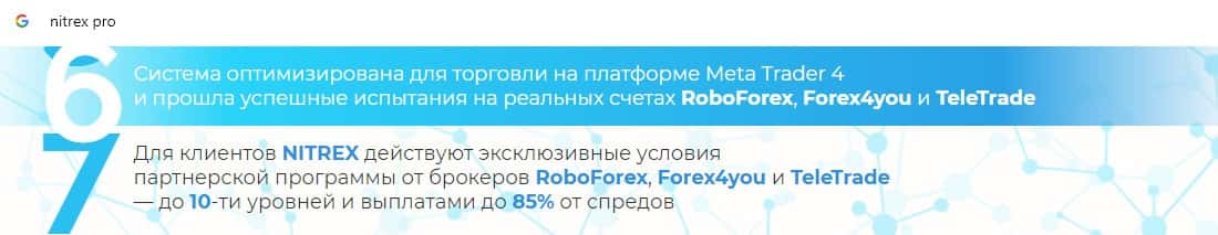 В данном разделе предоставлена информация о том, что жулики Нитрекс вешают лапшу на уши о якобы преимуществах торгового робота, который на самом деле сливает счета клиентов.
