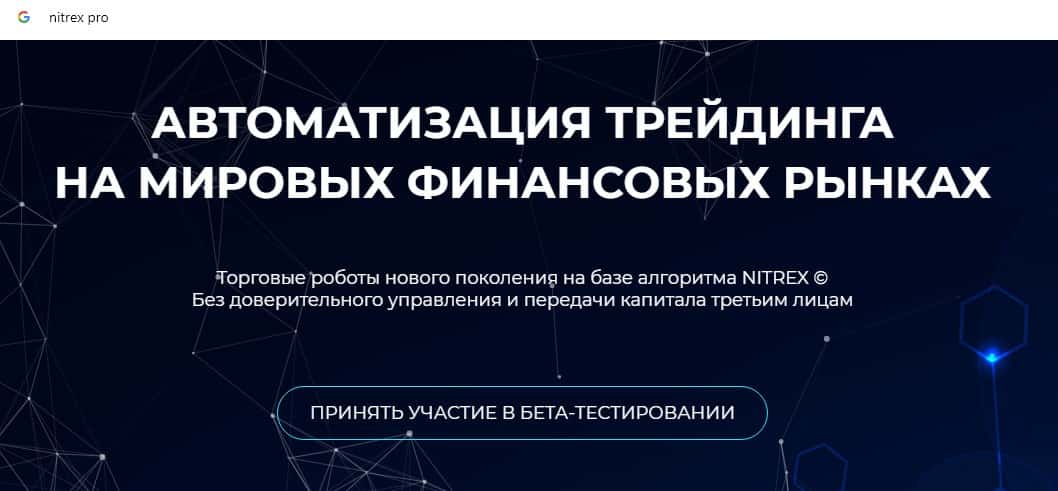 В данном разделе предлагаем увидеть скрин главной веб-страницы онлайн-ресурса мошеннической организации Нитрекс, помните о том, что такие проекты очень быстро скамятся.