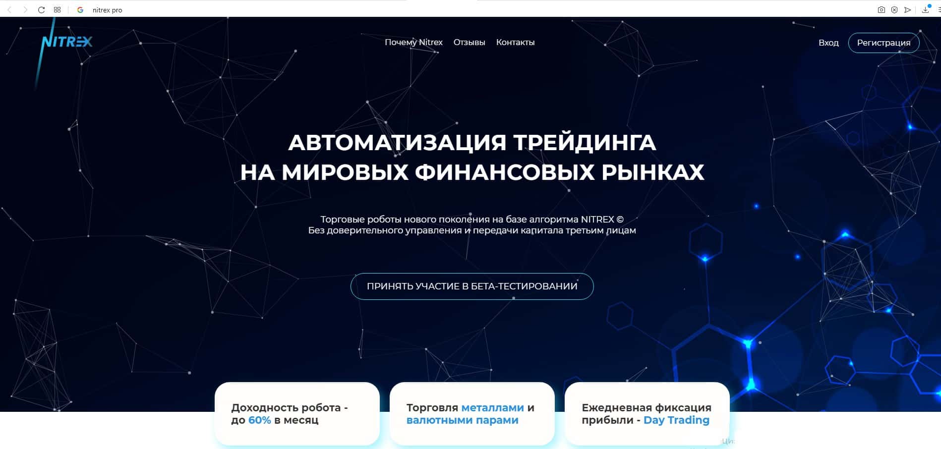 - Обзор главной страницы мошеннической организации Nitrex
