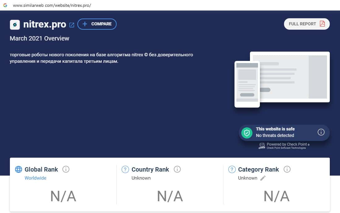 При проверке источников бренда по странам компании Нитрекс на сайте similarweb com, информация отсутствует, что является признаком фальшивого интернет-лохотрона.