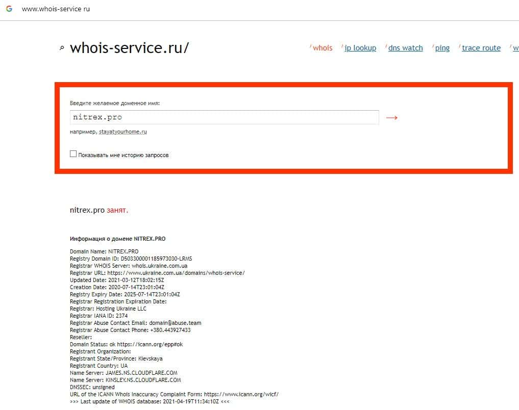 - Информация о возрасте домена скам-компании Нитрекс