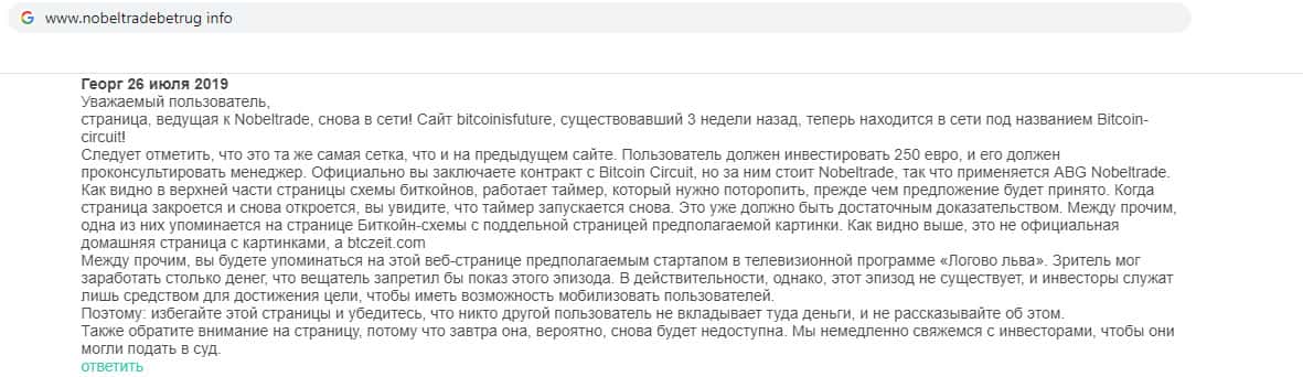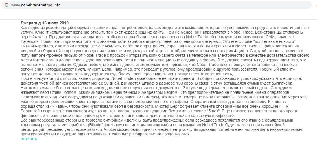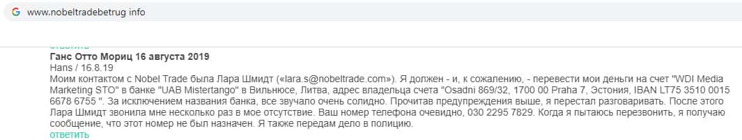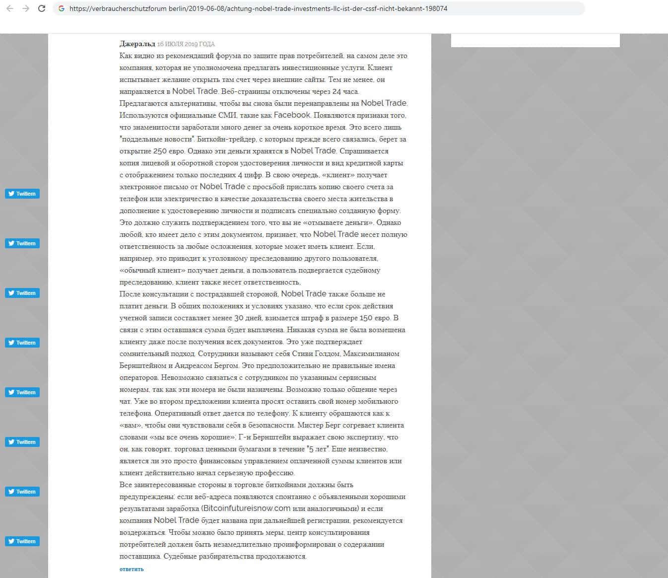 nobeltradebetrug info - отзывы о жуликах Нобел Трейд