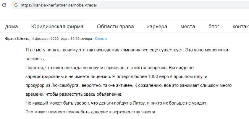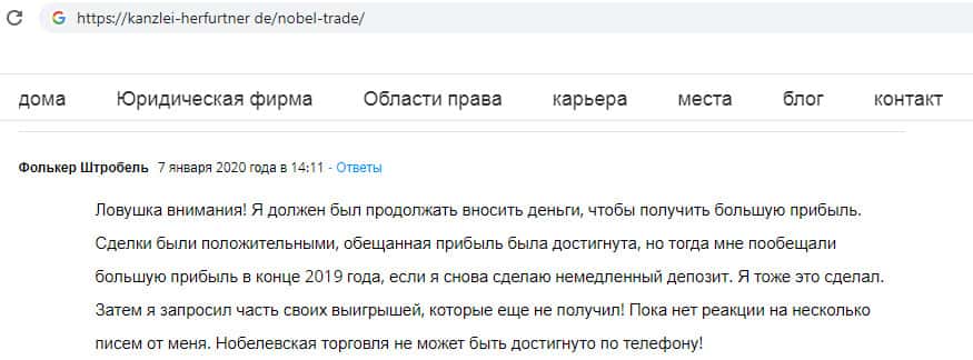 kanzlei-herfurtner de - сайт с отзывами о фирме кидал Nobel Trade