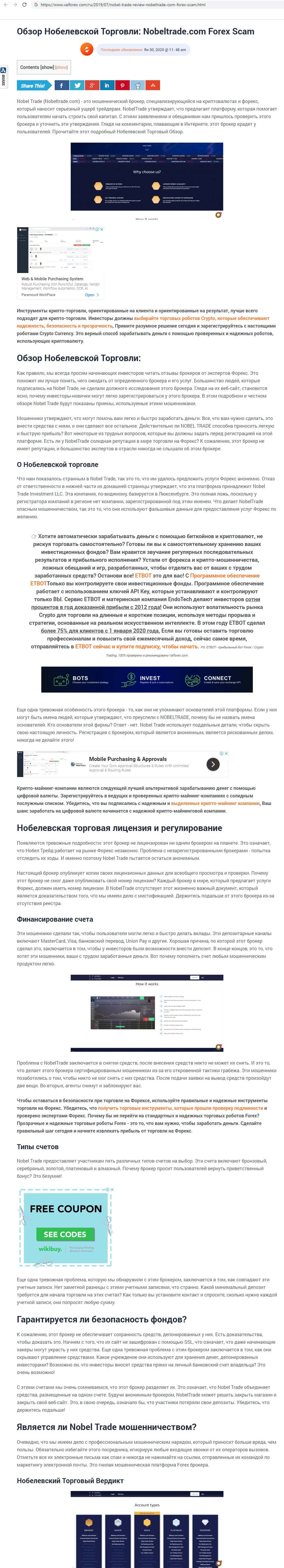 Обзор мошеннической конторы Нобел Трейд другим сайтом