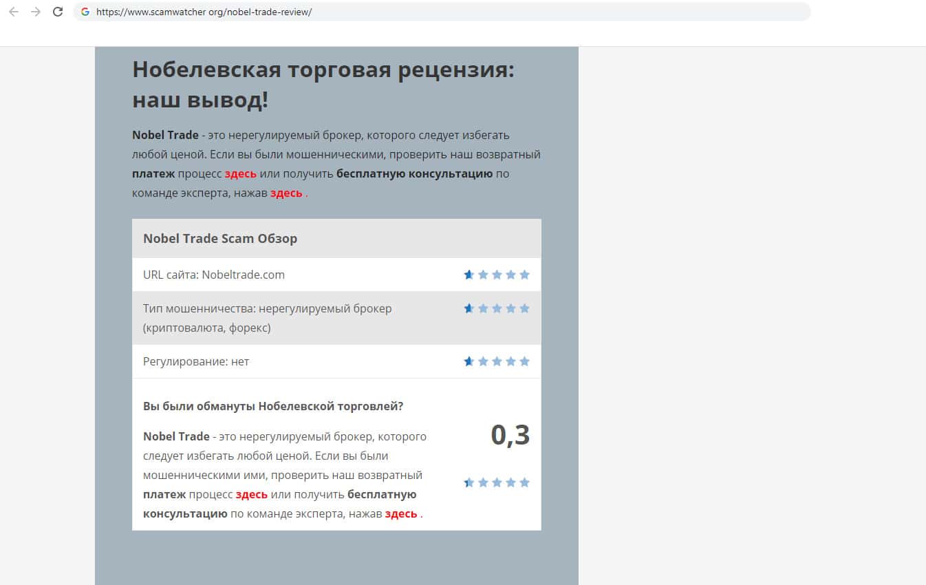 scamwatcher org - сайт с обзором на аферистов Нобел Трейд