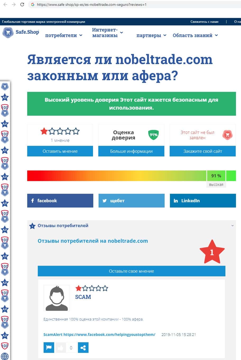 - Как оцениваются жулики Нобел Трейд другими интернет ресурсами