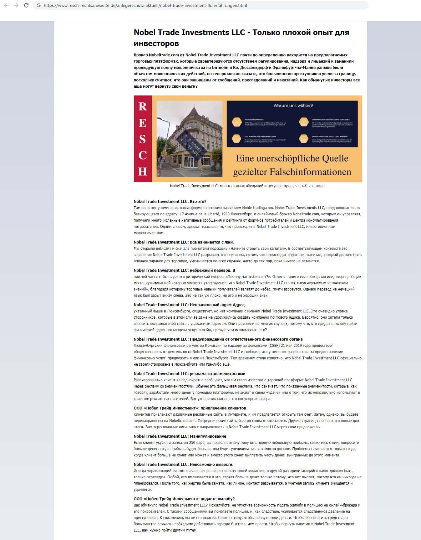 resch-rechtsanwaelte de интернет ресурс обозревающий недоконтору Nobel Trade
