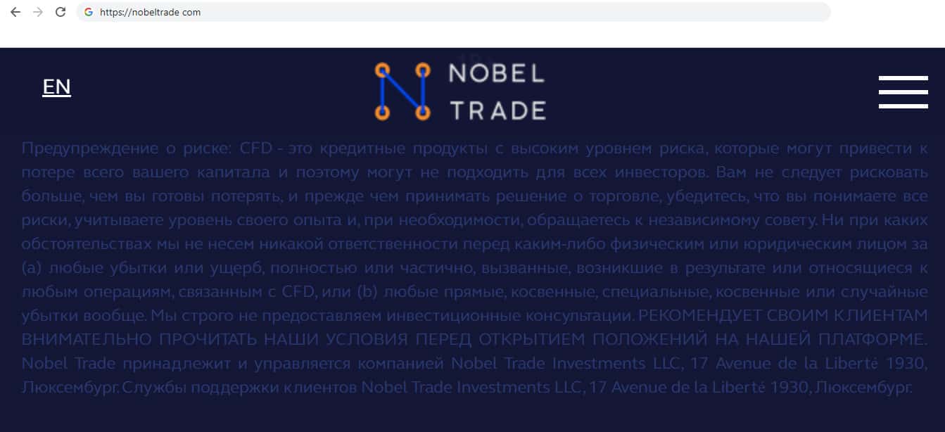 - Обзор главного интернет ресурса компании лохотронщиков Nobel Trade