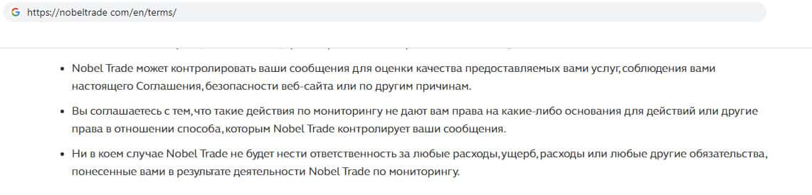 - Возмутительные пункты клиентского соглашения аферистов Nobel Trade