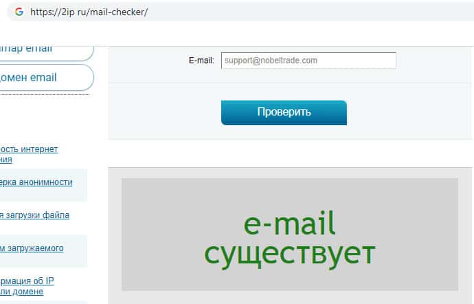 Так же мы проверили адрес электронной почты, который мошенники Nobel Trade указали в качестве контактных данных. Таким образом жулики смогут выбирать людей, и общаться только с теми, кто способен платить, а те кто больше не в состоянии, то компания отворачивается от них, и просто забывают о таких клиентах.