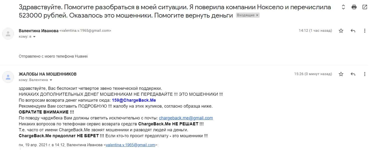 На публикации предоставленной ниже предлагаем ознакомиться с жалобой о жульнической конторе Ноксело, которая развела клиентку на 523 000 рублей.