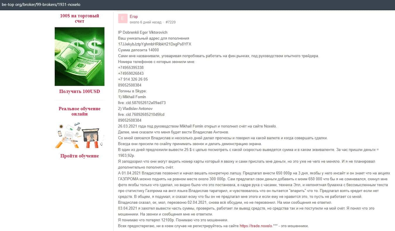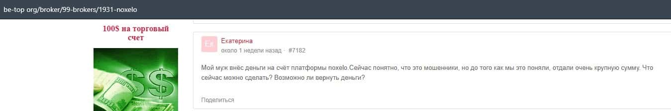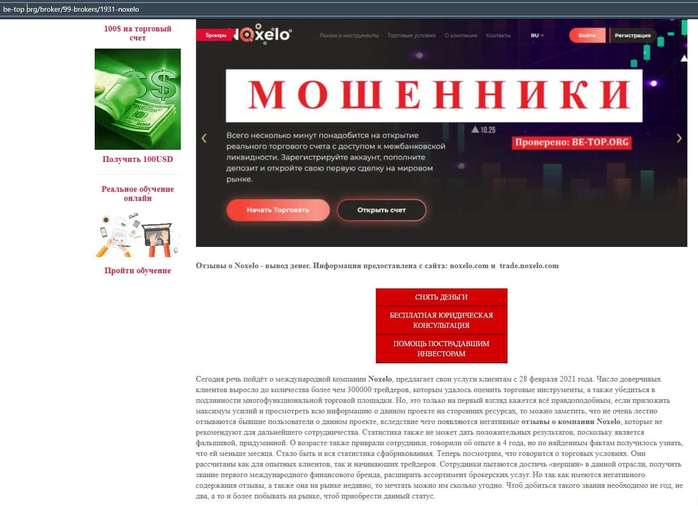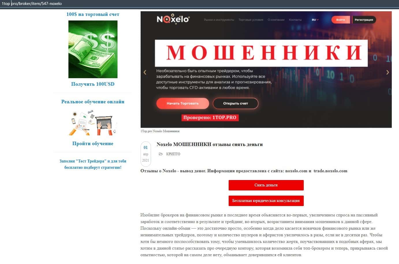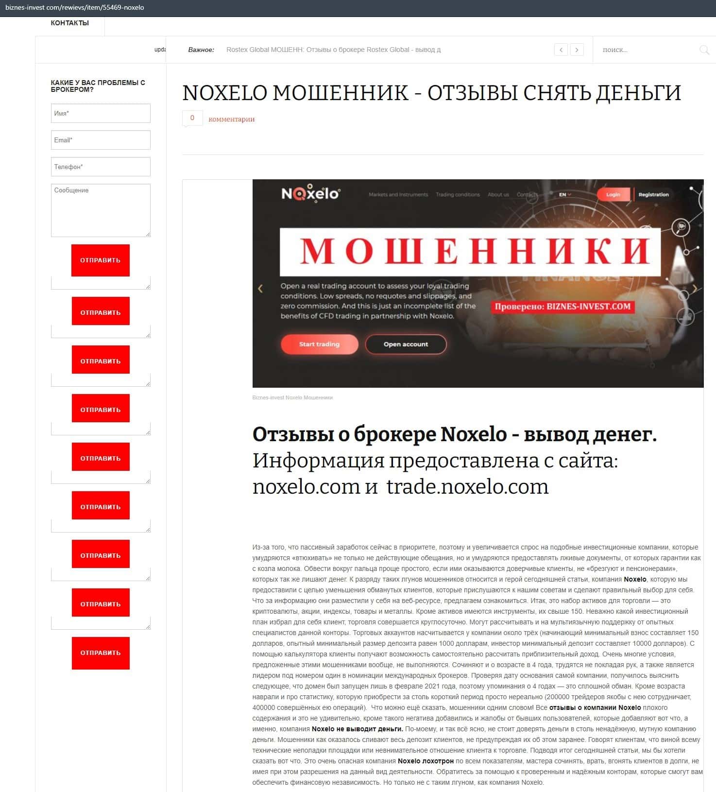 Далее представлен подробный отзыв о мошеннической конторе Noxelo, где описано, что аферисты наглым образом выманили деньги у клиента и ни копейки теперь не отдают.