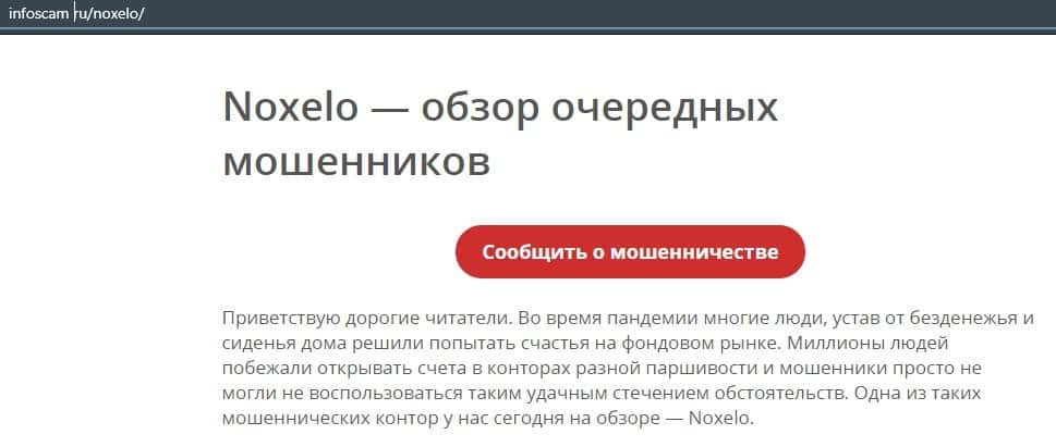 Что касается разбора интернет-портала форекс-мошенников Noxelo на ресурсе скамадвайзер ком, то здесь сразу видно, что очень опасно заходить на их шулерский сайт.