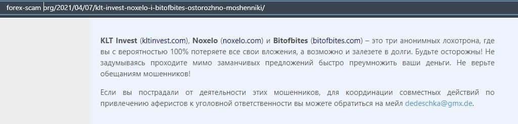 Далее представлена публикация, которая подтверждает связь мошеннической конторы Ноксело с другими подобными лохотронами. Это - КЛТ Инвест, Групп ИТА, Бит Оф Битес.