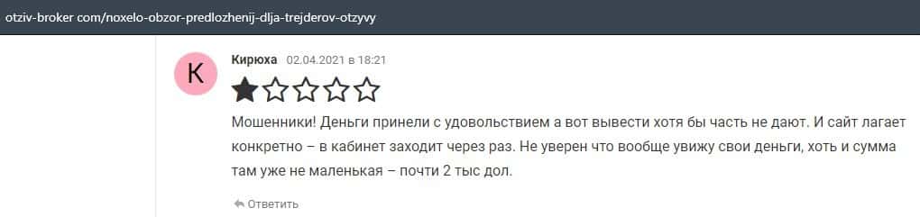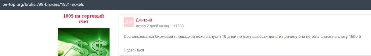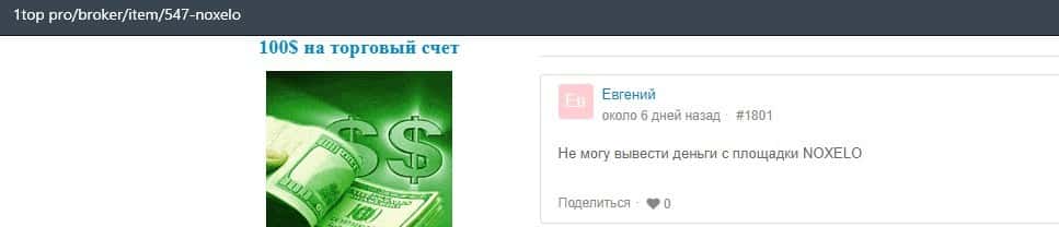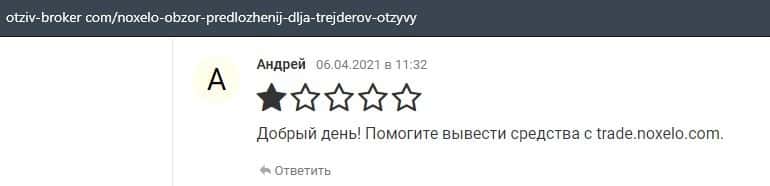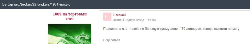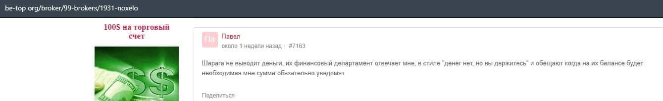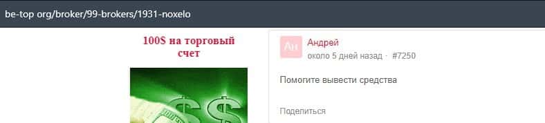 Очередная жертва жалуется, что он не может вывести деньги с торговой площадки конторы Ноксело. Это частое явление, поэтому можно считать, что он уже никогда их и не вернет.