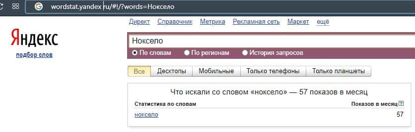 По запросу бренда "Ноксело" в поисковой системе Яндекс, контора набрала всего-то 57 показов за месяц и все же она является не популярной интернете.