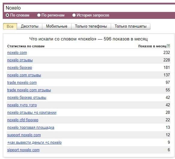 По версии запросов бренда "Ноксело" в поисковой системе Гугл есть запросов нет вообще, так как данная шарага не популярна в сети вообще.