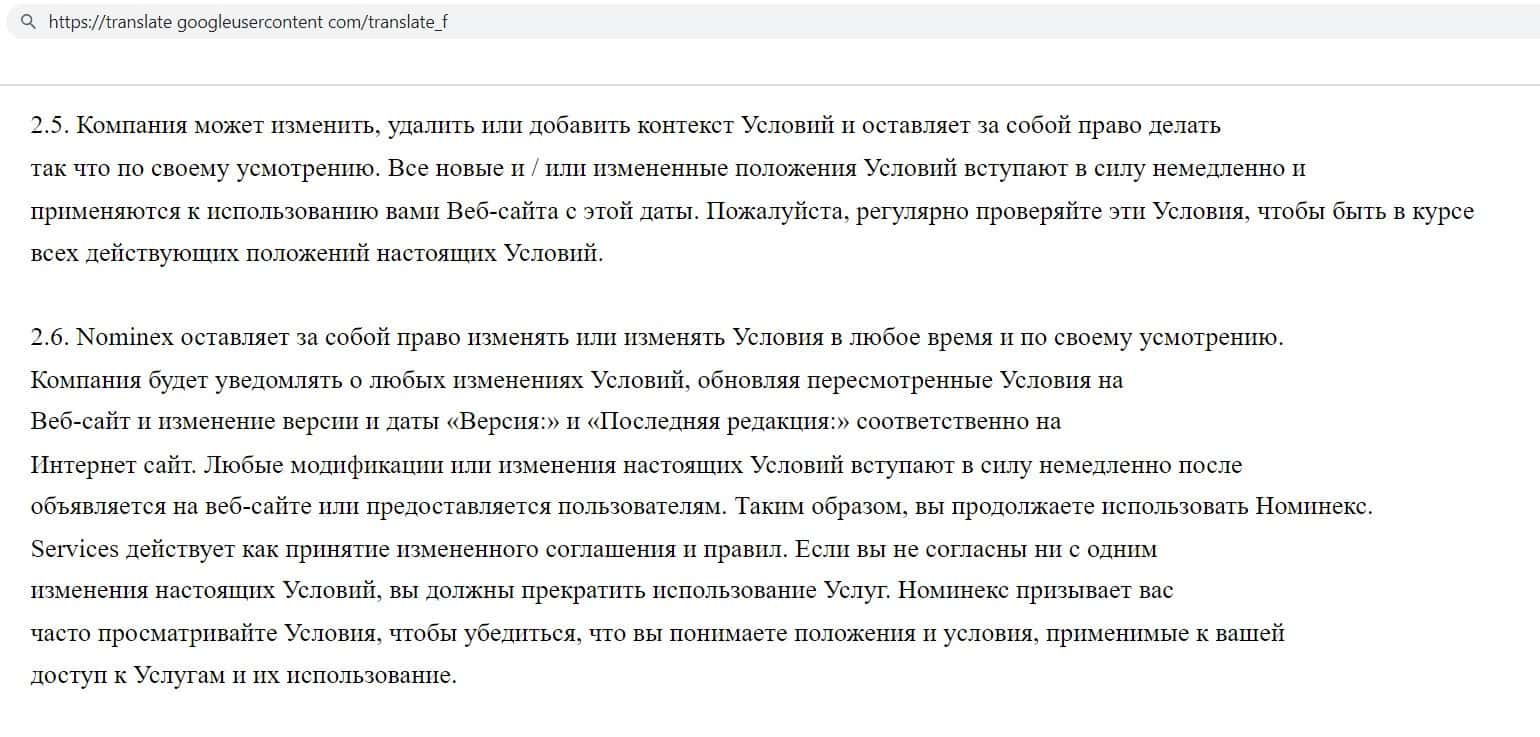 Мошенническая организация NominEx в своём клиентском соглашение указала, что имеет право в любое время изменять условия данного соглашения, даже если клиенты не дают на это согласие.