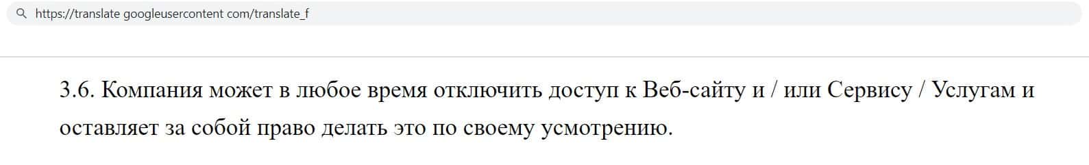 Так же компания финансовых аферистов NominEx указала, что имеет право в любое время отключить доступ к своему сайту и услугам, руководствуюсь лишь собственным желанием.