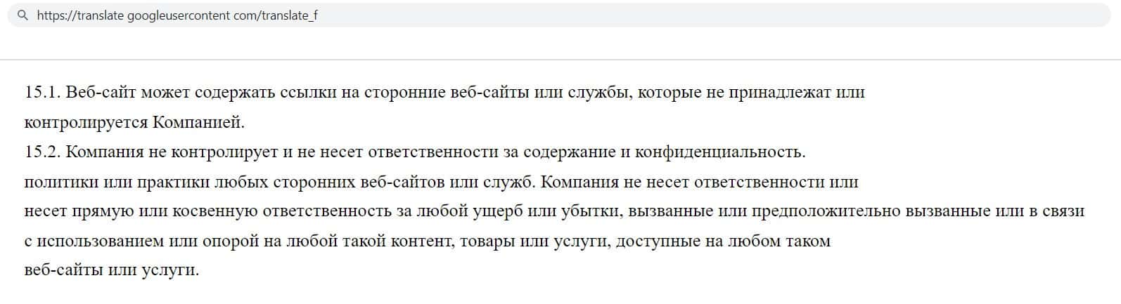 Не забыли мошенники Номинекс указать в своём соглашение, что на их сайте есть ссылки на сторонние интернет ресурсы, но компания почему то не отвечает за их содержание.
