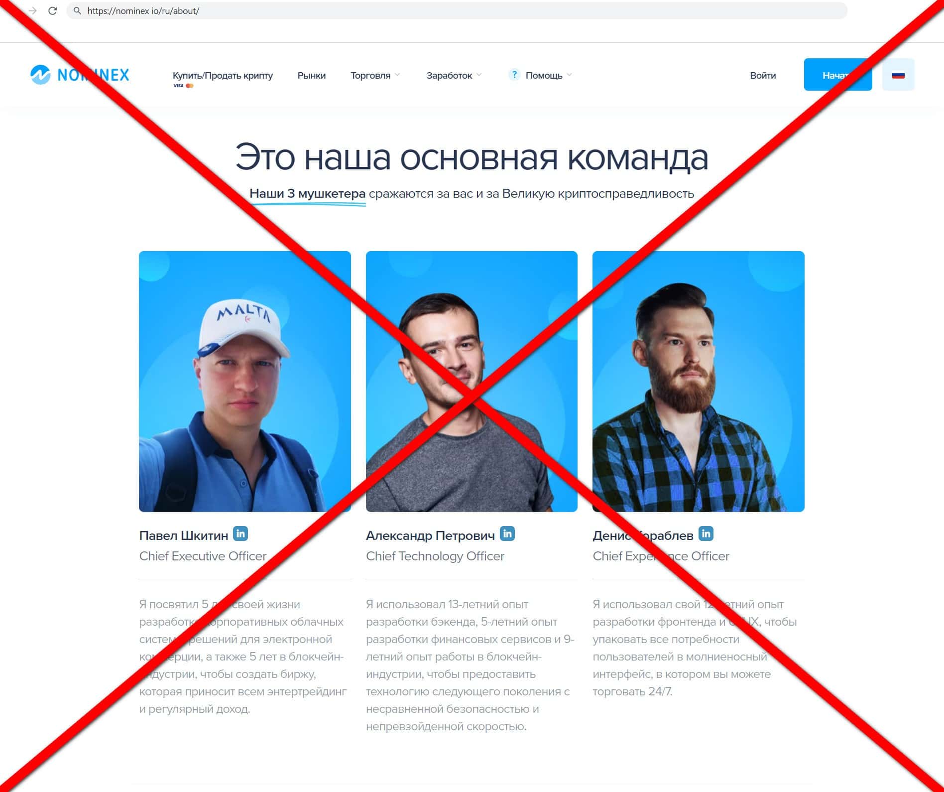 На своём главном интернет ресурсе компания кидал NominEx представила пункт, где указала информацию о якобы своём руководстве. Но на самом деле это всего лишь фейк, так как настоящие руководство скрывается.
