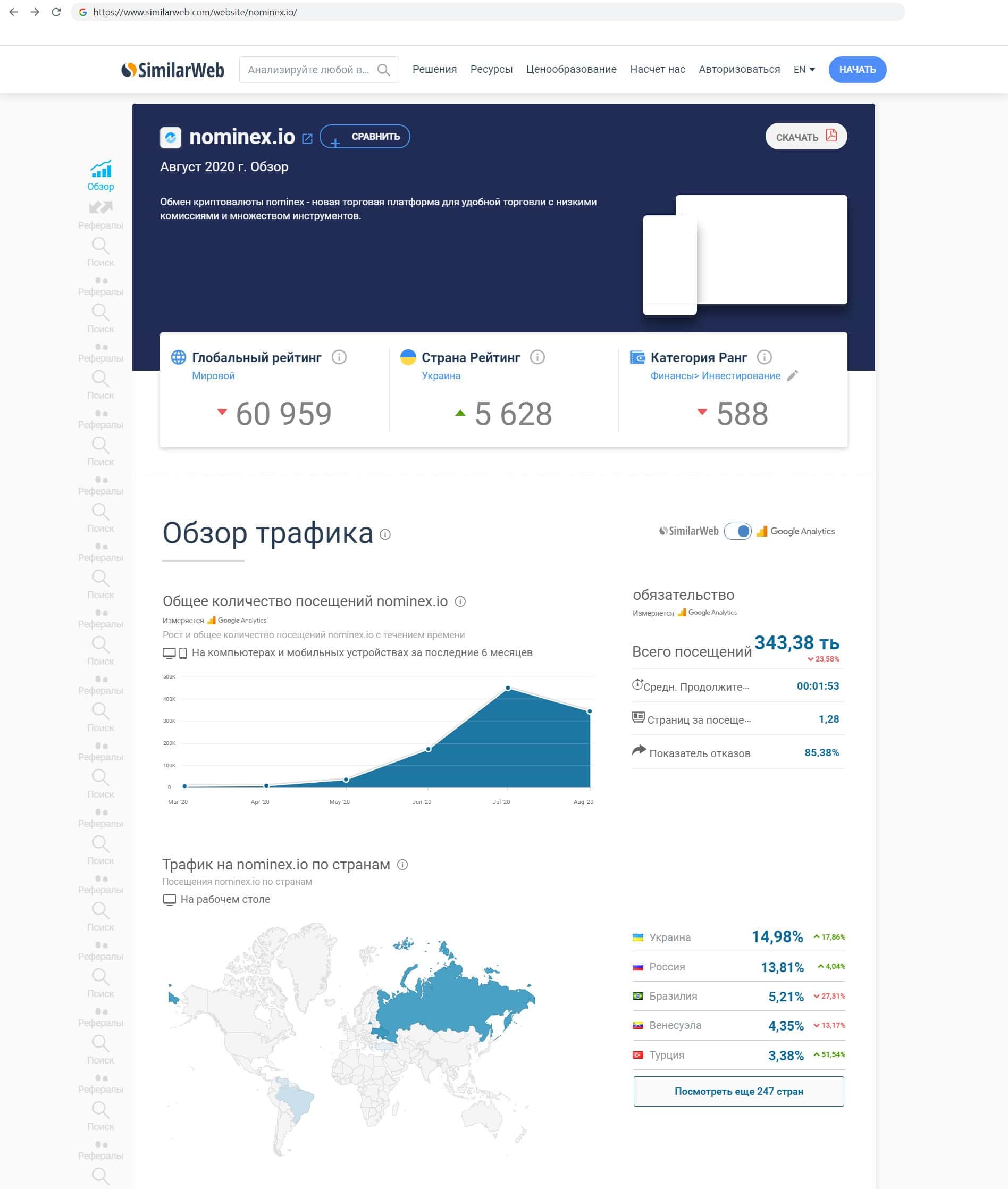 - Информация о трафике главного интернет ресурса разводил Номинекс