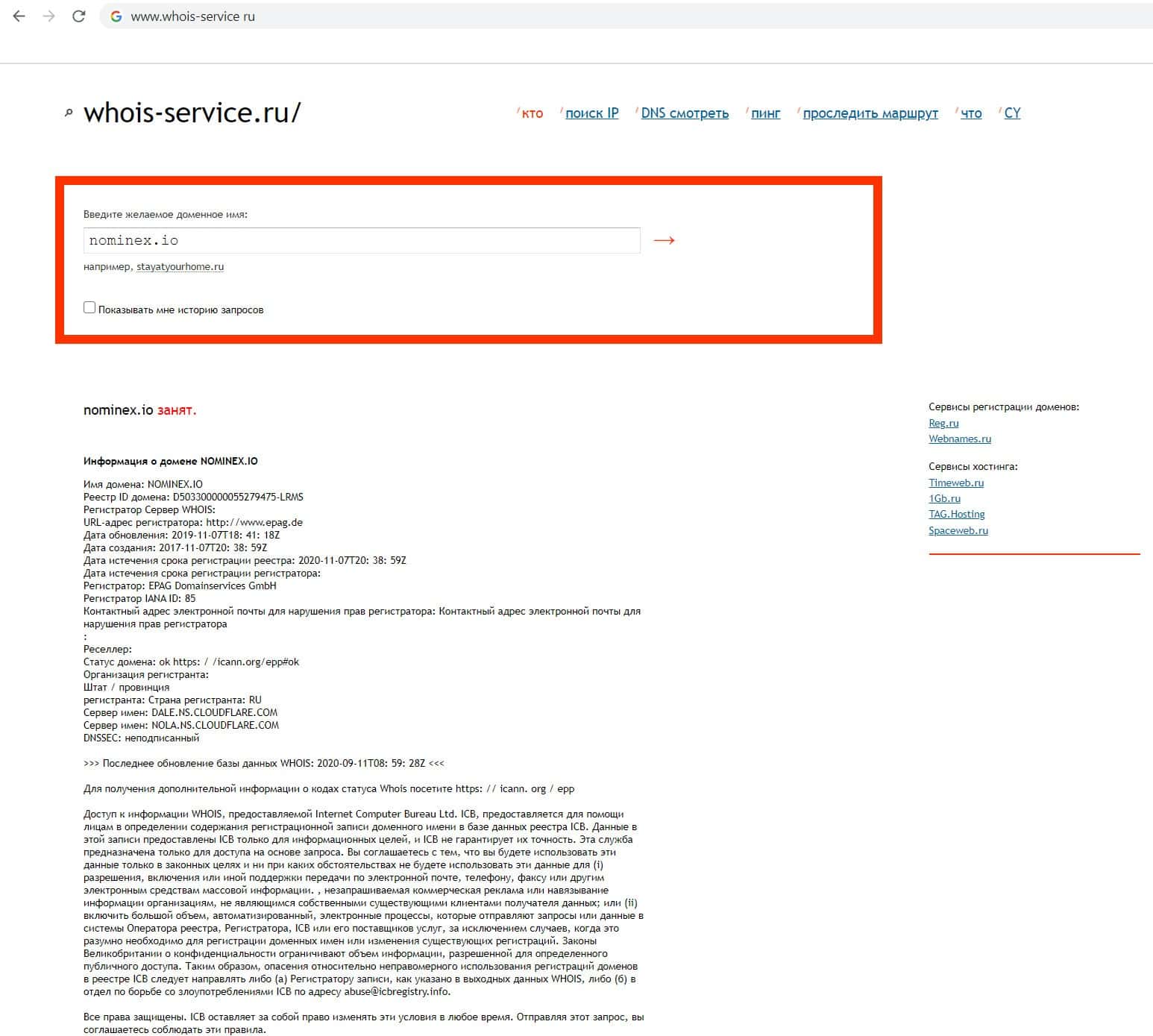 Кому принадлежит домен фирмы аферистов NominEx?