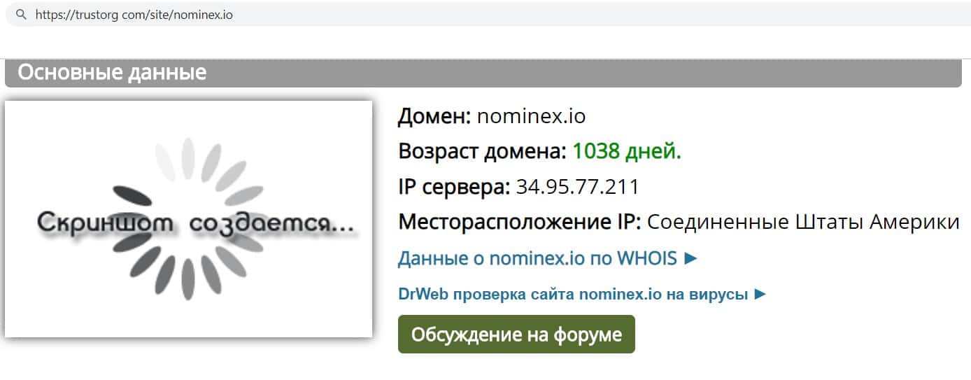 Информация о возрасте компании махинаторов nominex io