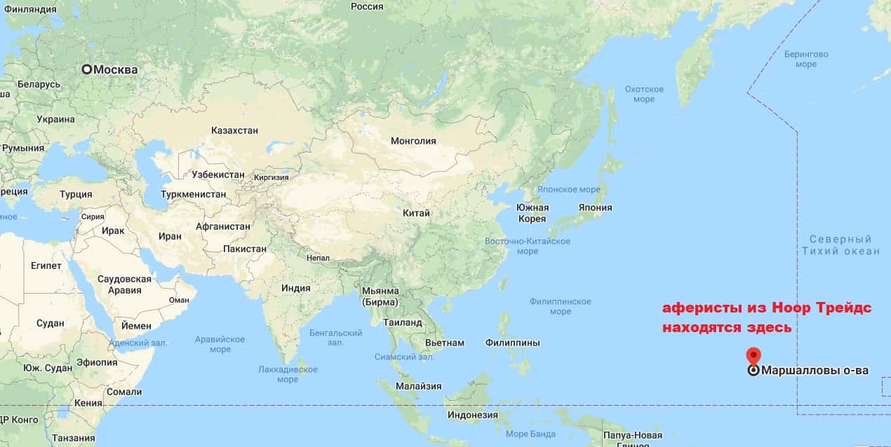 Мошенническая контора Ноор Трейдс зарегистрирована на Маршалловых островах. Это всем известная офшорная зона, где любят устраивать свои офисы разные жулики.