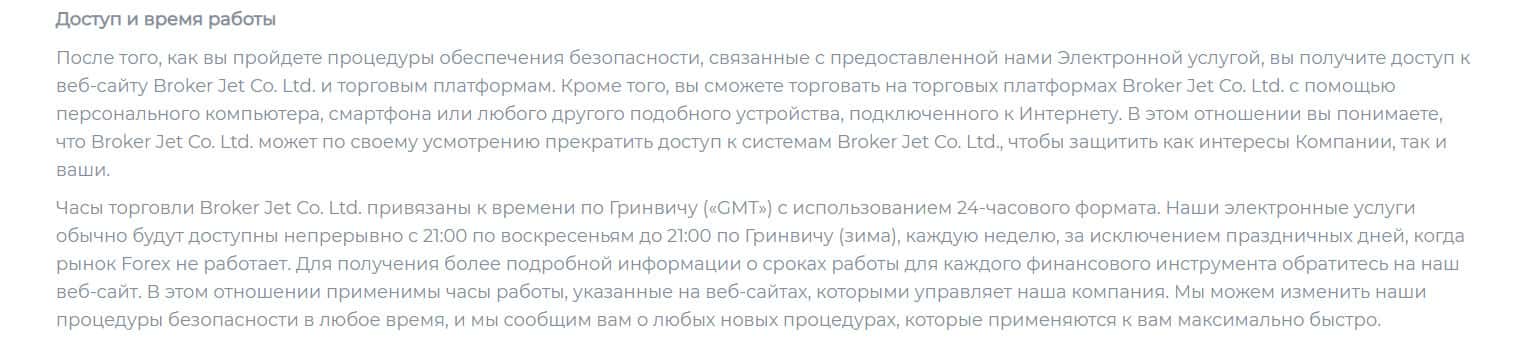 В подразделе под названием Доступ и время работы разъясняется, как клиент получает доступ к сайту и описан график предоставления он-лайн услуг.