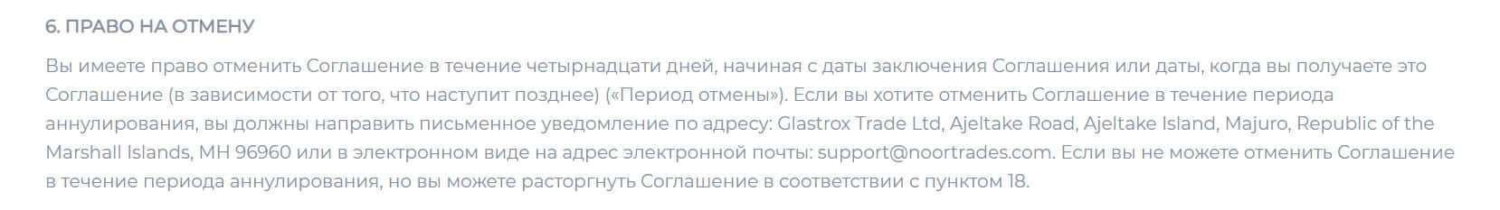 Пункт 6 договора брокерской компании Ноор Трейдс объясняет, в каких случаях клиент может расторгнуть настоящее соглашение.