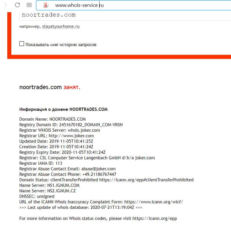 Как и ожидалось, владелец компании Ноор Трейдс не захотел раскрывать, кому принадлежит доменное имя сайта. так поступают все мошеннические организации.