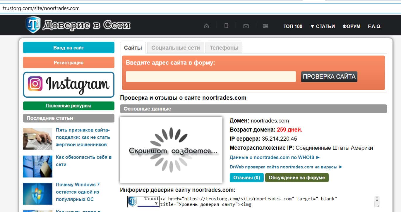 - Показатели сайта псевдоброкера Ноор Трейдс