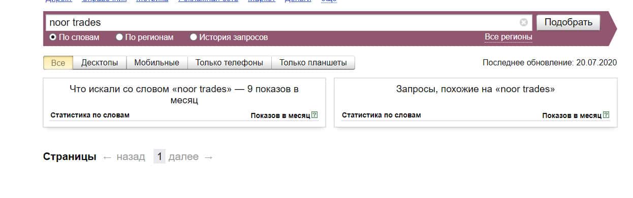 То же название "noor trades", но написанное с пробелом, люди пытались найти в системе Яндекс всего 9 раз.