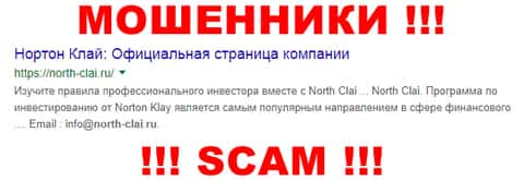 Нортон Клай - очередные мошенники сети интернет, которые занимаются наглым разводом наивных пользователей сети под предлогом обучения торговли форекс, в ходе которого аферисты North Clai сливают наивных пользователей брокерам-мошенникам. В связи с этим сотрудничать с шулерами Нортон Клай определенно не рекомендуем !!!