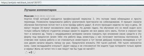 - Еще один отзыв о работе с лохотроном Нортон Клай с портала antijob net