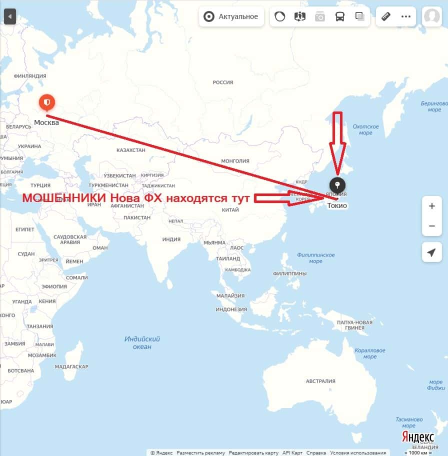 Местом своей регистрации жулики Нова ФХ выбрали Токио. Подальше от стран СНГ. Таким образом они решили сразу себя обезопасить от преследований кинутых клиентов.