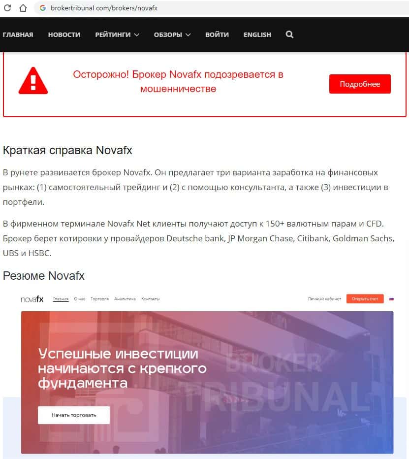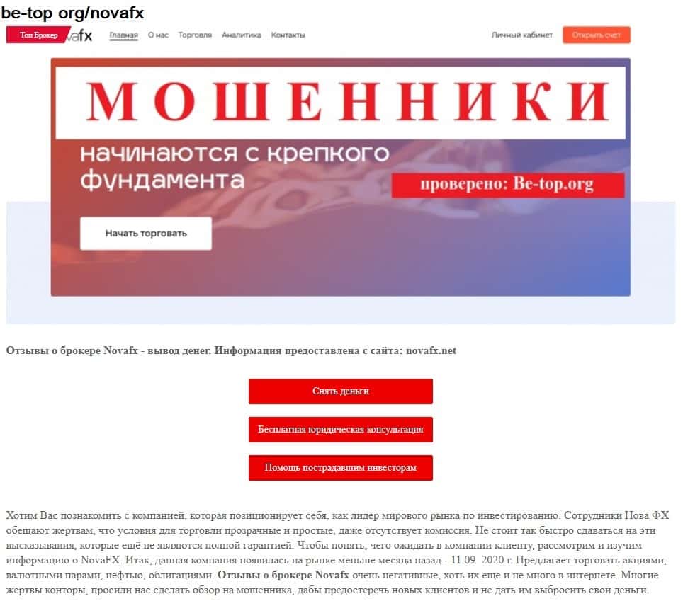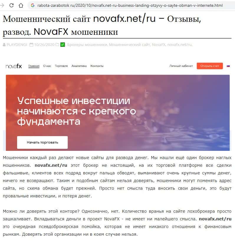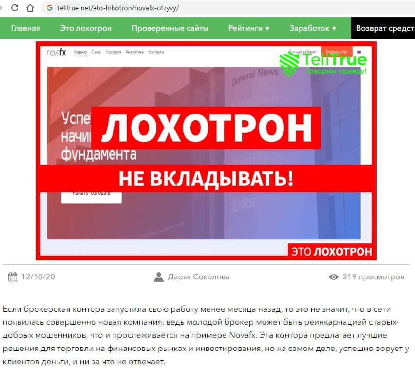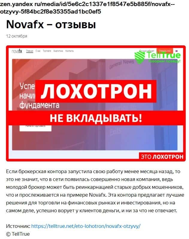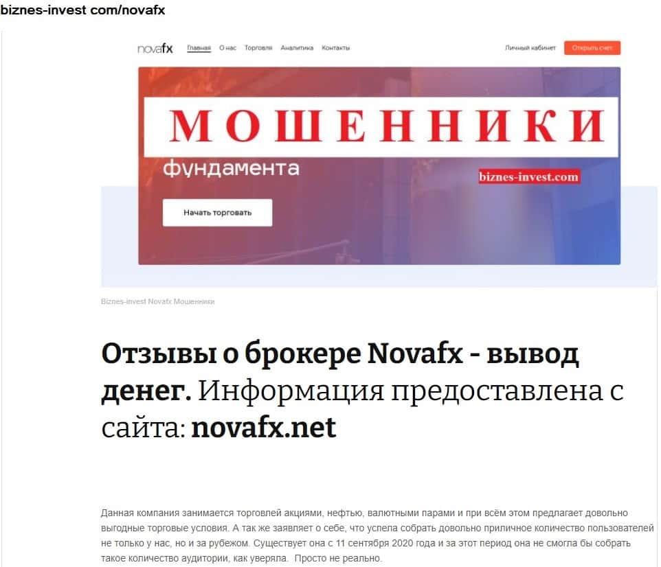 Все больше и больше авторитетных сайтов говорят о том, что Нова ФХ - это просто банальная контора мошенников, которая обманывает своих клиентов.