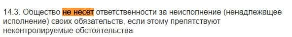 Если возникают неконтролируемые обстоятельства, которые мешают жуликам исполнить свои обязательства, то они за это не отвечают. Только вот не говорят, какие именно...