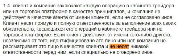 Первое, за что снимают с себя ответственность жулики Нова ФХ - это за операции в вашем личном кабинете. Но это хитрый пункт, потому что операции за вас они-то сделают...