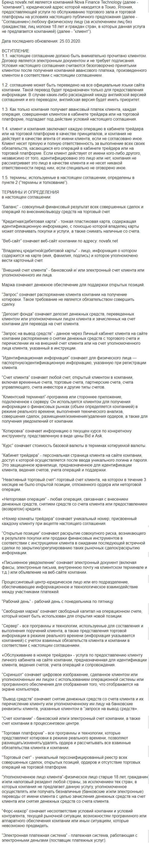 Ниже вы можете ознакомиться с полной версией договора мошенников Нова ФХ, который они заключают со своими клиентами.