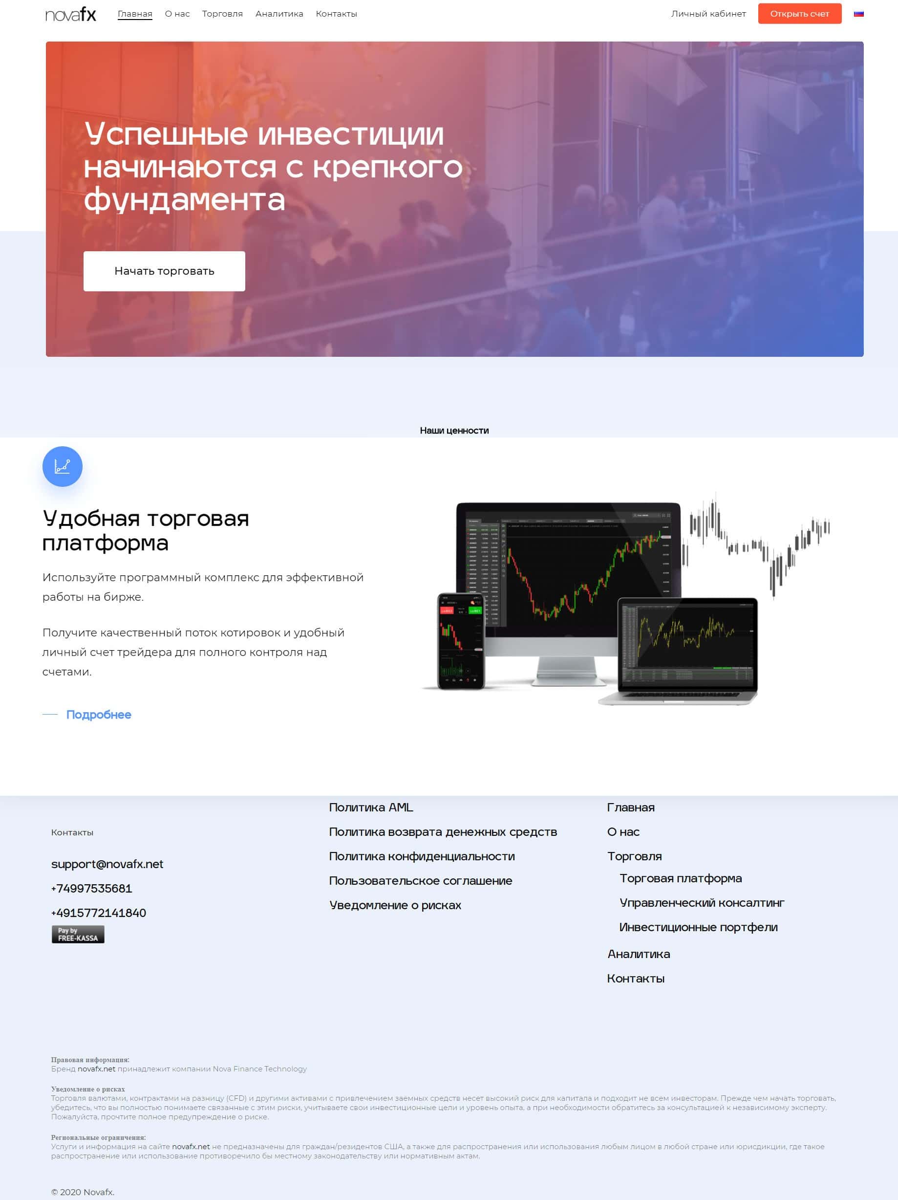 Сайт жуликов novafx net выглядит очень типично для таких лохотронов: на нем мало полезной информации для клиента и посредственный дизайн.