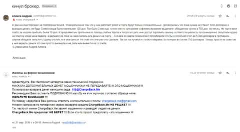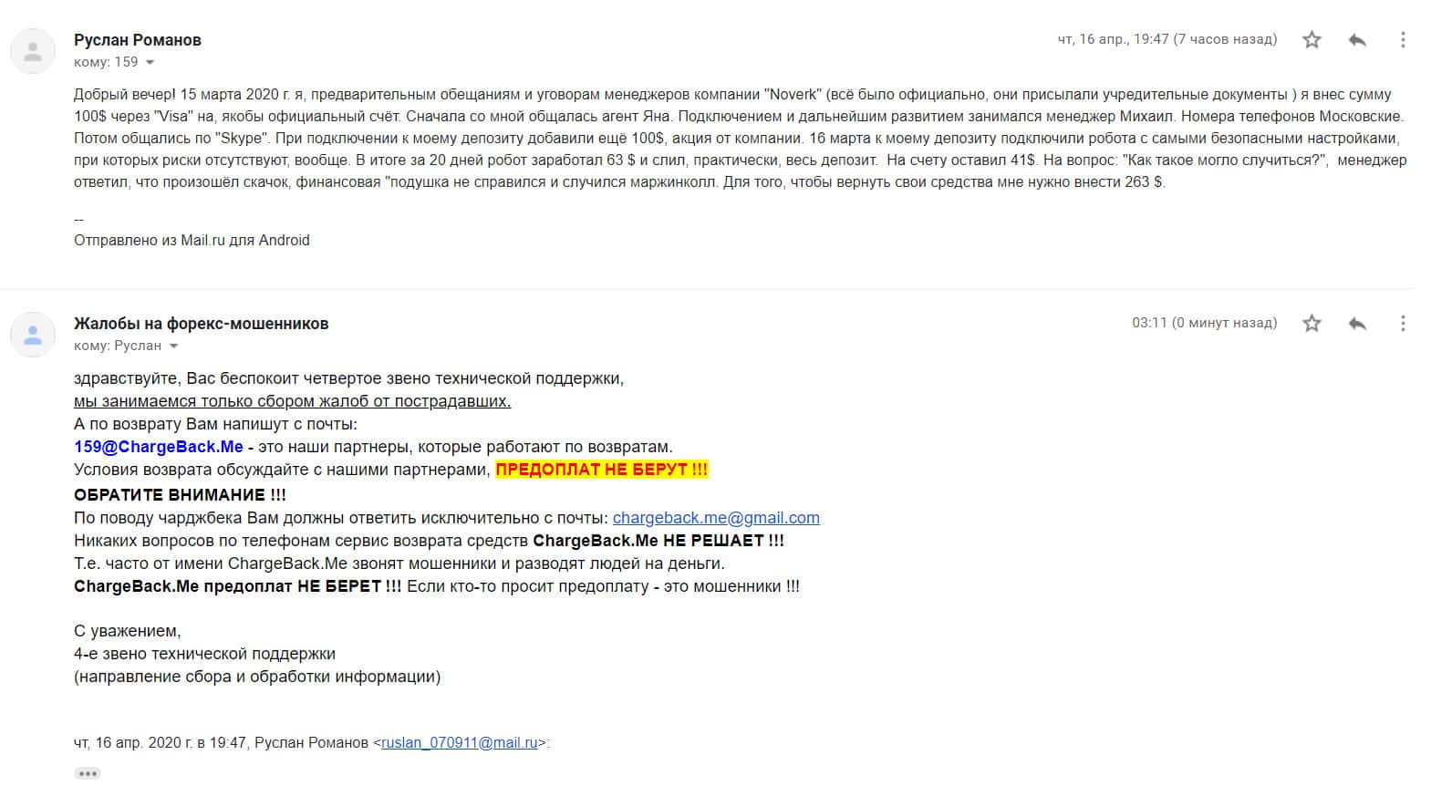Очередной человек обратился к нам за помощью в возврате средств, опять же из-за действий дилинговой конторы Новерк. Аферисты просто обворовали его и жестко кинули. Мы можем посоветовать отправить все подробности развода, а также подтверждения платежей, нашим партнерам, которые используют услугу чарджбек в банковской системе, дабы можно было вернуть утраченное. Если условия подойдут, то они обязательно помогут.