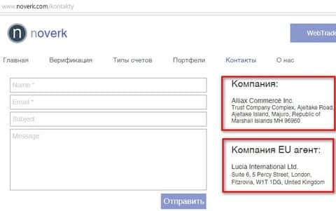 Как мы видим с официального сайта конторы Новерк, она принадлежит компании Alliax Commerce Inc, расположенной на Маршалловых островах. Также контора имеет свою компанию-агента в Европе, которая зарегистрирована под названием Lucia International Ltd и расположена по адресу: Suite 6, 5 Percy Street, London, Fitzrovia, W1T 1DG, United Kingdom.