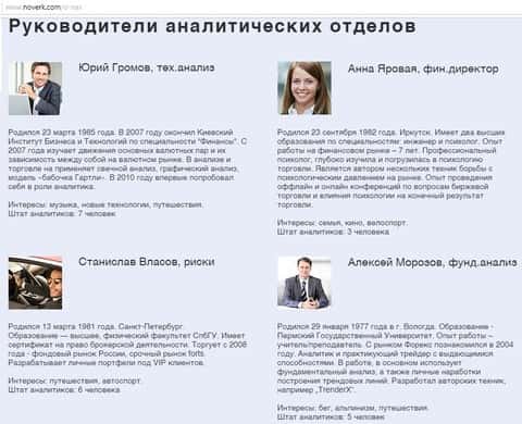 Ниже на фото вы можете познакомится с руководителями аналитических отделов компании Noverk. Здесь вы можете прочитать о них более подробную информацию о том где и когда родились, на кого учились и чем сейчас занимаются. Это: Юрий Громов, Анна Яровая, Станислав Власов и Алексей Морозов.