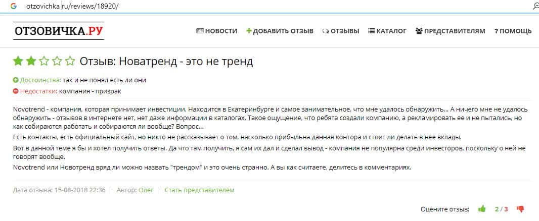 По словам автора развернутого отзыва, мошенническая контора NovoTrend занимается откровенным кидаловом и там он доказывает, что данный лохотрон работает в Екатеринбурге и соответственно негативных отзывов больше всего именно там. Тот кто не поверил отзывам, тот и попался к ним на крючок.