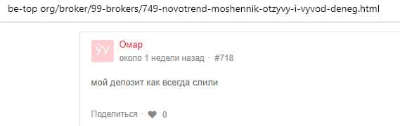 Если мошенники обворовали Вас, то не допустите, чтобы аферисты Ново Тренд не прекращали кидать таких же малоопытных игроков как и Вы дальше, не забывайте обмениваться личным незавидным опытом.