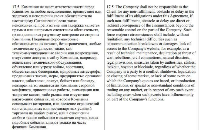 В клиентском соглашении настолько много дыр касательно ухода от ответственности, что нет смысла даже начинать вести с ними диалог. Жулики Ново Тренд четко прописывают, что они не несут ответственности перед клиентом в случае, если они не смогут предоставить качественные услуги или выполнить обязательства по договору.